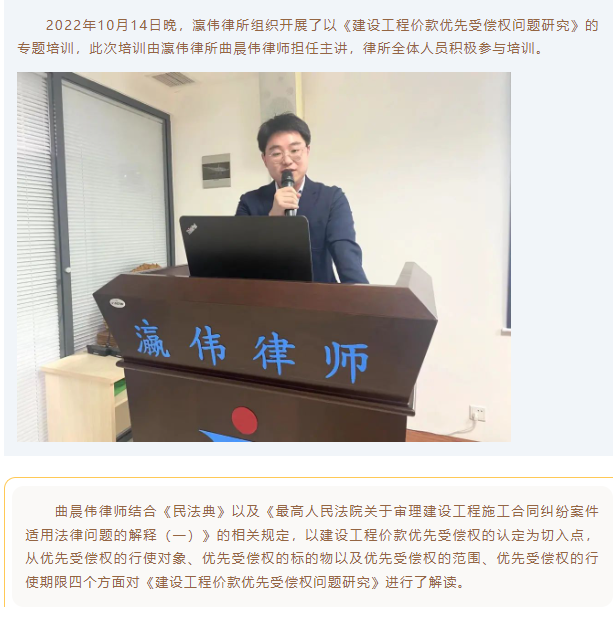 瀛伟大讲堂|建设工程价款优先受偿权问题研究