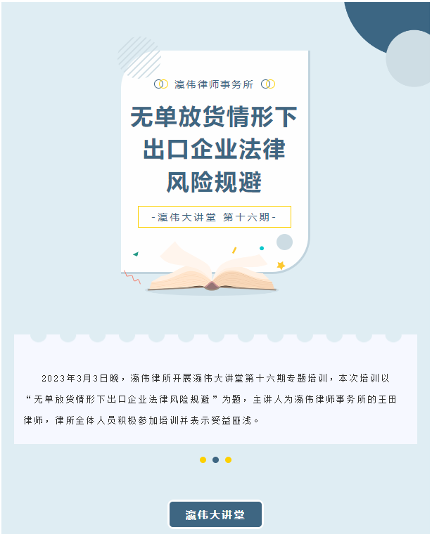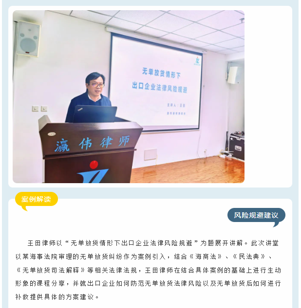 瀛伟大讲堂|第十六期:无单放货情形下出口企业法律风险规避