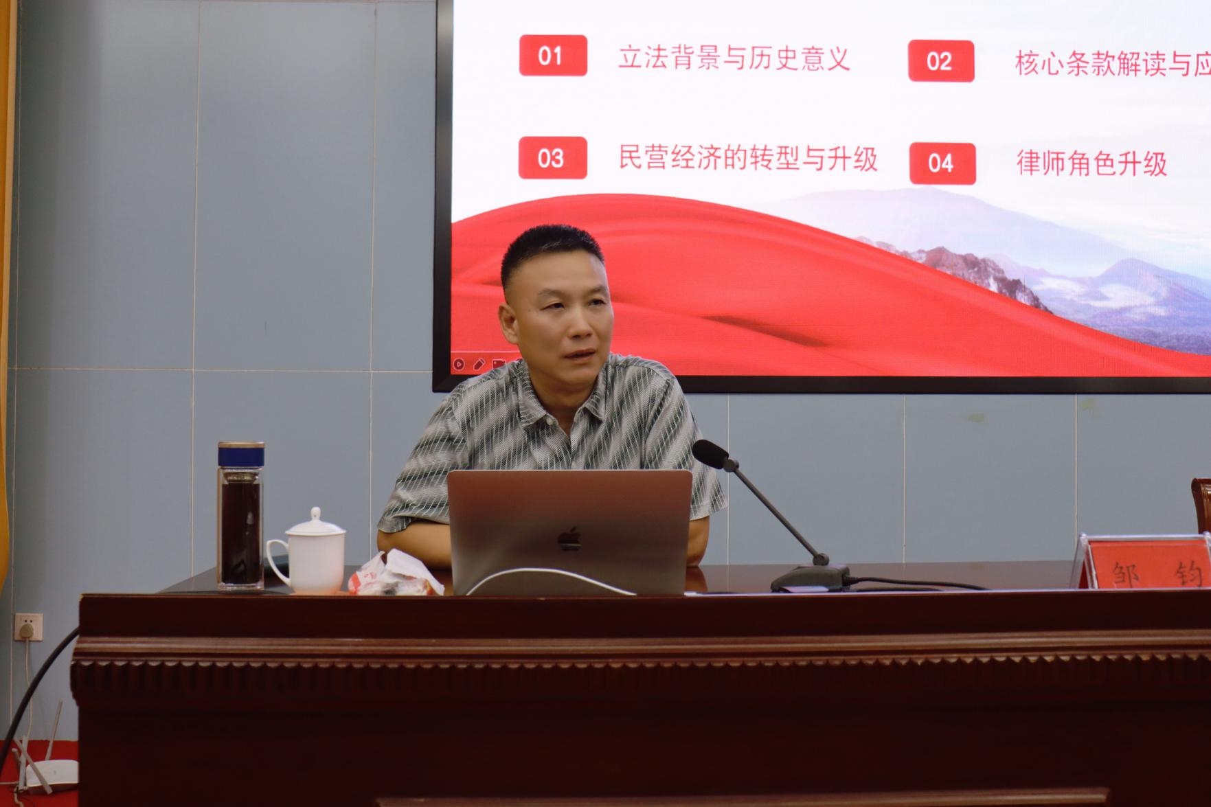 2025年9月18日上午,龙口市委市政府举办市委理论学习中心组学习(扩大)暨法治专题辅导报告会。会议由龙口市委常委、政法委书记孙少君主持,瀛伟律所主任邹钧应邀出席,作题为《〈民营经济促进法〉深度解读与企业实践指南》的专题授课。全市各级领导干部参加培训,包括市委市政府全体市级领导、各镇(街、区)党(工)委书记、相关部门单位主要负责人、政法系统机关干部代表等,约90 余人。  作为我国首部专门促进民营经济发展的基础性法律,《民营经济促进法》的颁布实施具有里程碑意义。邹钧主任从立法背景与历史意义入手,系统阐述了该法对构建法治化营商环境、稳定民营企业发展预期的重要作用。随后,他围绕权益保护、市场准入、融资支持、政府履约、科技创新等关键条款,结合实际案例进行深入剖析,并提出具有操作性的合规建议。 在谈及民营经济转型升级时,邹钧主任强调,企业应当从传统粗放模式转向创新驱动与合规经营,政府部门也应在政策引导和法律服务供给中发挥更加积极的作用。他从律师职能转型的角度指出,法律人应主动从“事后救济”转向“事前风控”,成为企业治理与政策实施之间的重要桥梁。  |