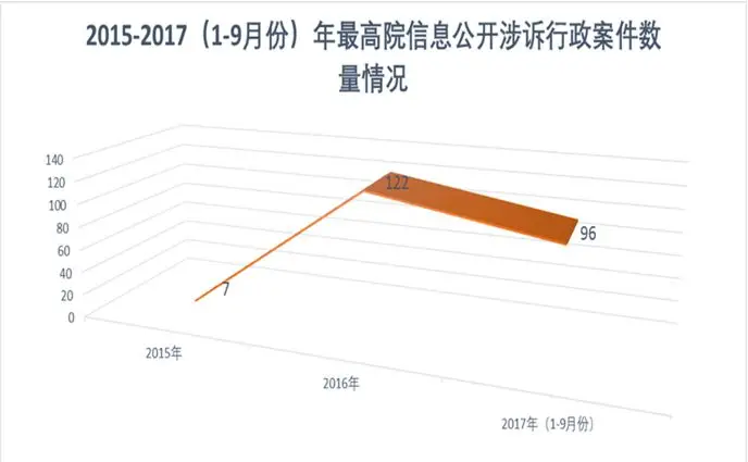 前言 政府信息公开是建设现代政府,提高政府公信力,保障公众知情权的重要举措。2008年5月1日《中华人民共和国政府信息公开条例》(以下简称《信息公开条例》)实施,政府信息公开迈出重大步伐,取得显著进展。 基于政府信息与民众自身密切相关,社会公众对政府信息公开尤为关切,自《信息公开条例》实施以来,政府信息公开案件已成为法院受理行政诉讼案件新的重要增长点,而行政机关面临信息公开,频繁进行审查、答复和应诉,工作压力非常巨大,但最终结果往往不甚理想。 为了更好的开展政府信息公开工作,我们从政府信息公开的实际出发,通过对政府信息公开类案件的调研,就调研过程中发现的各类问题、法律工作难点和困惑,进行多角度的分析,试图研究和破解信息公开过程中遇到的现实困境,明晰信息公开的法律规则与涵义,以期夯实政府信息公开的基础。 由于篇幅原因,本次结果展示只包括最高院审理的政府信息公开案件部分,山东省高级人民法院和烟台市中级人民法院审理的政府信息公开案件数据报告以及我们的分析、建议将陆续放出。 一、数据来源及样本概况 我们通过收集威科先行(CCH)、无讼、裁判文书网等法律文书数据库,通过百度、谷歌、搜狗等搜索引擎,通过对最高人民法院、山东省高级人民法院、烟台市中级人民法院2015年度、2016年度、2017年度(1-9月)公开裁判文书的检索,将与山东省、烟台辖区内信息公开相关的所有公开案例作为数据来源,基于大数据的视角对涉诉案例反映出的案件类型、管辖法院、信息公开标准等法律问题进行专业化分析,期望能为相关的行政机关以后可能会遇到的法律问题提供前瞻性的预测及风险防范的可行性建议。 二、最高院审理政府信息公开案件的裁定结果 《中华人民共和国行政诉讼法》规定:基层人民法院管辖第一审行政案件,中级人民法院管辖对国务院部门或者县级以上地方人民政府所作的行政行为提起诉讼的第一审案件。依此规定,行政诉讼一审案件一般由基层人民法院或中级人民法院管辖,二审案件一般由中级人民法院或高级人民法院管辖,当事人对省高院的二审判决结果不服,可向最高院申请再审,最高院对申请人的再审申请进行审查,做出相应的再审裁定书。我们对2015年至2017年(1-9月份)最高院审理的涉及信息公开行政案件进行了数据分析,总计统计了225个案件,全部为再审裁定书,涉及三十余个省、市、县级人民政府及行政机关组成部门,裁定结果均未驳回再审申请。 三、2015-2017年(1-9月)最高院审理政府信息公开案件的数量情况