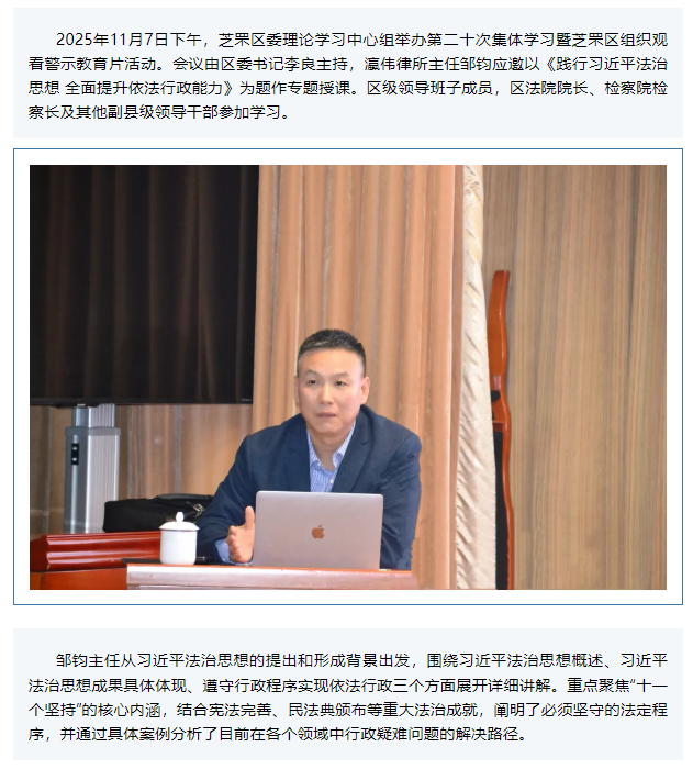 瀛伟动态|邹钧主任应邀为芝罘区委理论学习中心组作法治讲座