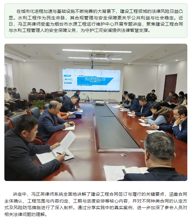 瀛伟动态|聚焦水利工程法律风险防范 冯正英律师受邀开展专题培训