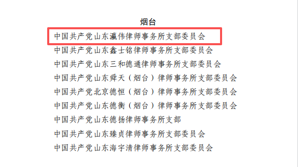 | 瀛伟喜报|中共山东瀛伟律师事务所支部委员会荣获山东省律师行业第一批“四强”党支部称号 |