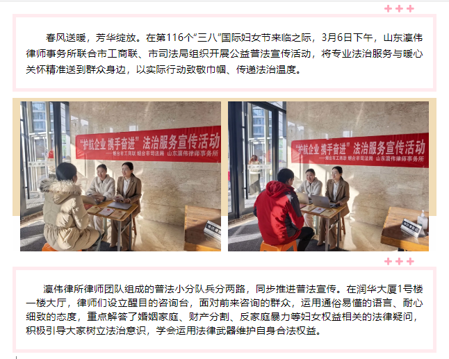 瀛伟动态 | 瀛伟律所开展三八妇女节公益普法活动